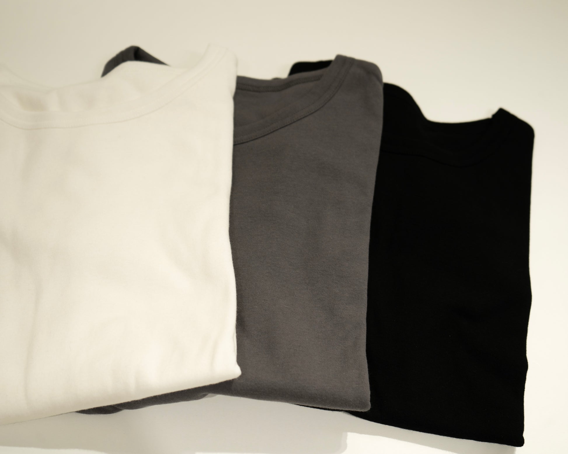 一般的なカットソー生地で使用されている糸よりも細く非常に繊細な100番手の強撚糸を使用することで、柔らかくて繊細なタッチ、しっかりと丈夫な作りに。